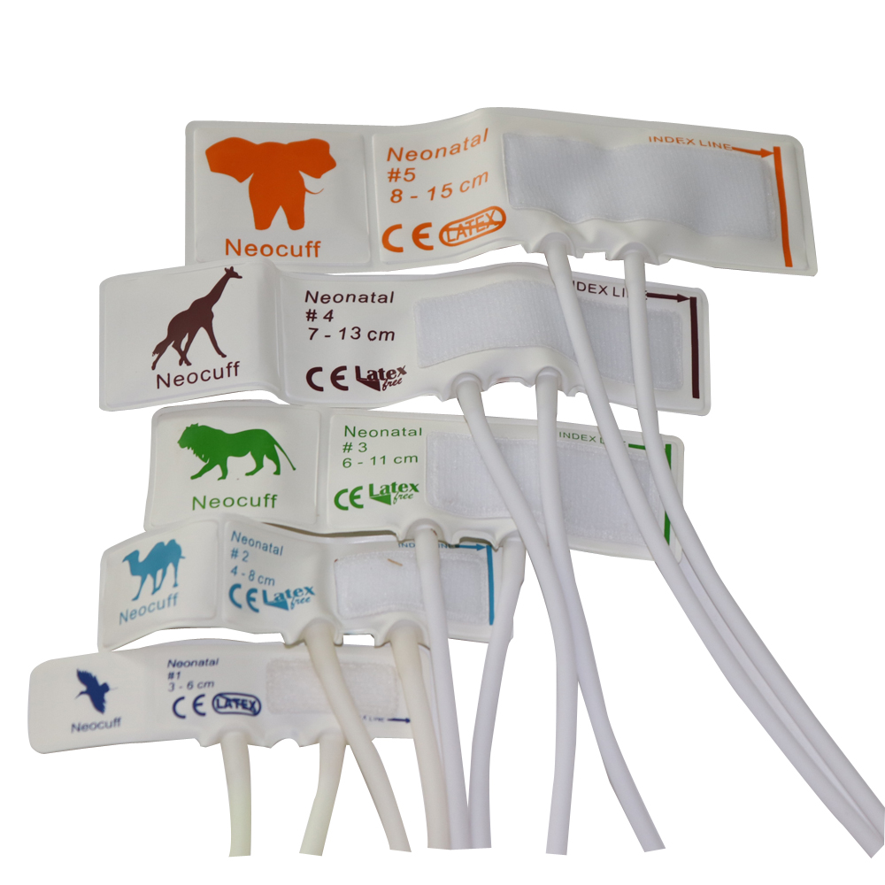 Cyff pwysedd gwaed tafladwy ar gyfer newydd-anedig, cyff nibp Deunydd TPU Deunydd maint tiwb deuol1-5,5piece / bag.without cysylltwyr