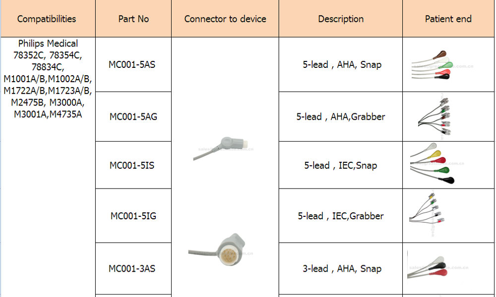 Philips Medical 78352C, 78354C, 78834C, M1001A / B, M1002A / B, M1722A / B, M1723A / B, M2475B, M3000A, M3001A, M4735A