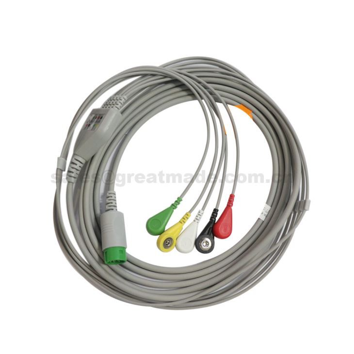 Cebl ECG Tarian 5-plwm 5 darn sy'n gydnaws â Mindray Beneview T5. T6. T8, PM5000, PM 6000, Snap, IEC, 12tr, Rownd 12PIN