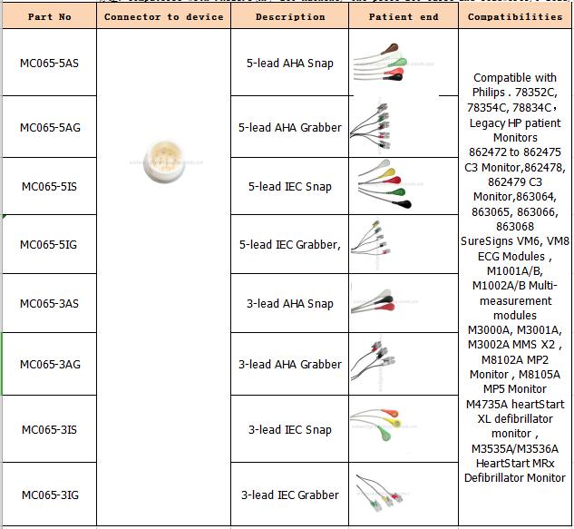 "Cyd-fynd â Philips. 78352C, 78354C, 78834C acy Etifeddiaeth Monitro cleifion 862472 i 862475 C3 Monitor, 862478, 862479 C3 Monitor, 863064, 863065, 863066, 863068 SureSigns VM6, VM8 Modiwlau ECG, M1001A / B, M1002A / B. modiwlau mesur M3000A, M3001A, M3002A MMS X2, Monitor MP8 M8102A, Monitor M8105A MP5 Monitor M4735A calonStart XL diffibriliwr, M3535A / M3536A Monitor Diffibriliwr MRx HeartStart "