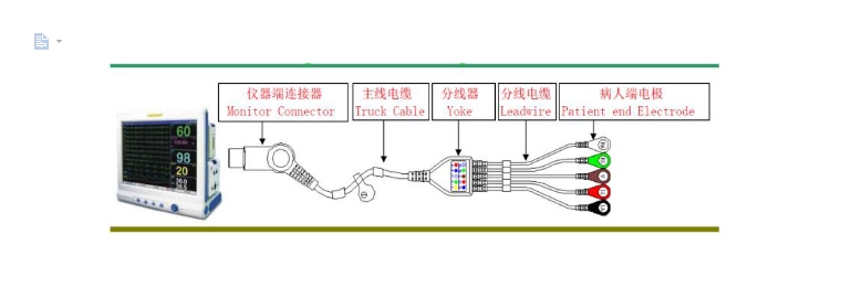 Cysylltwch wrie plwm ECG â'r monitor cleifion addasol, a gwiriwch a yw'r agoriad yr un peth â llawlyfr cyfarwyddiadau gweithredu. Dylai'r electrod ECG o wifren plwm gael ei gysylltu ar y claf mewn trefn, dylid cysylltu'r wifren plwm ar wahân i osgoi entwine, fel arall gall achosi ymyrraeth yn ystod y monitro, megis amrywiad cyfradd y galon, amrywiad tonffurf ac ati.